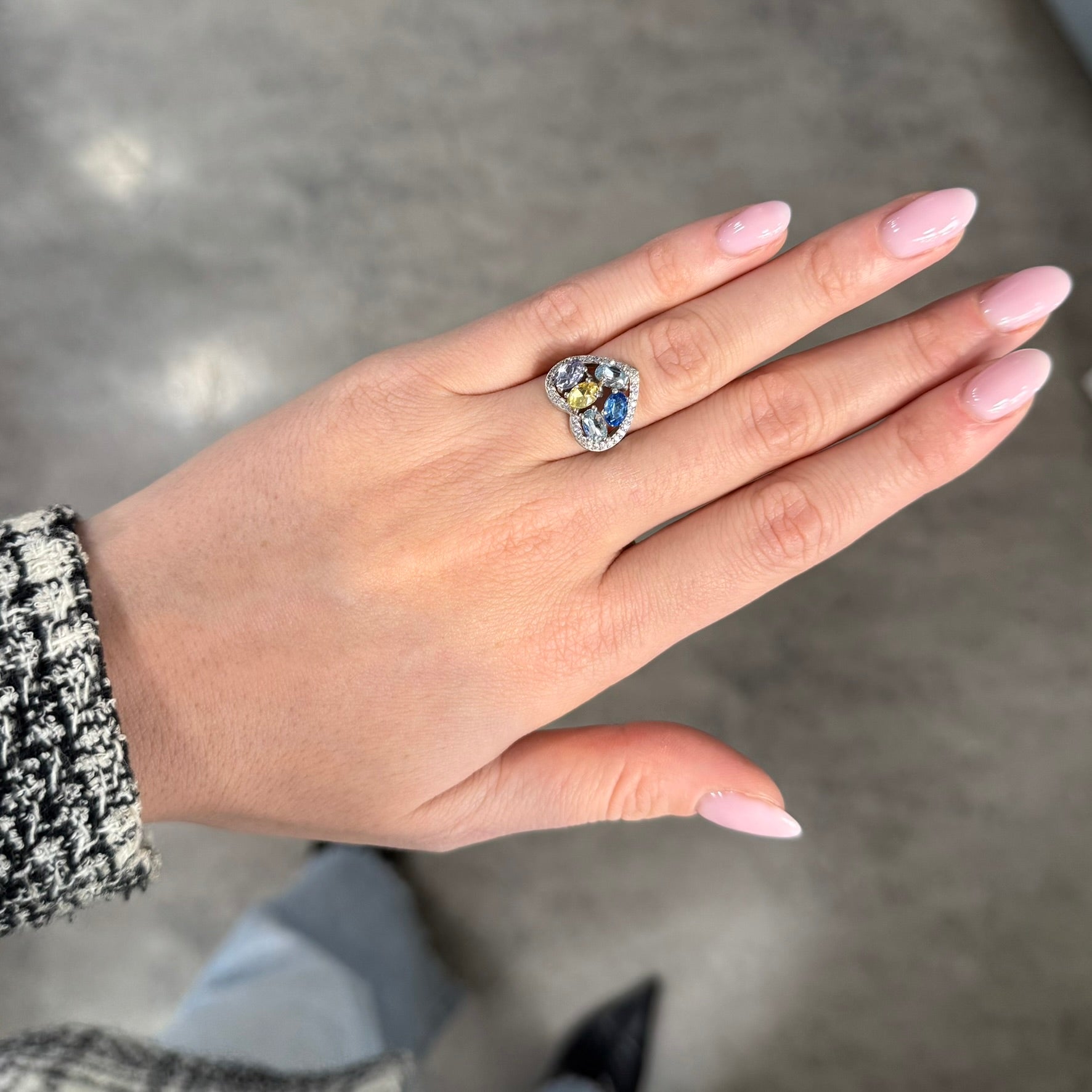 Anello in Argento 925 con Zirconi bianchi e Gemme di Zirconi colorati
