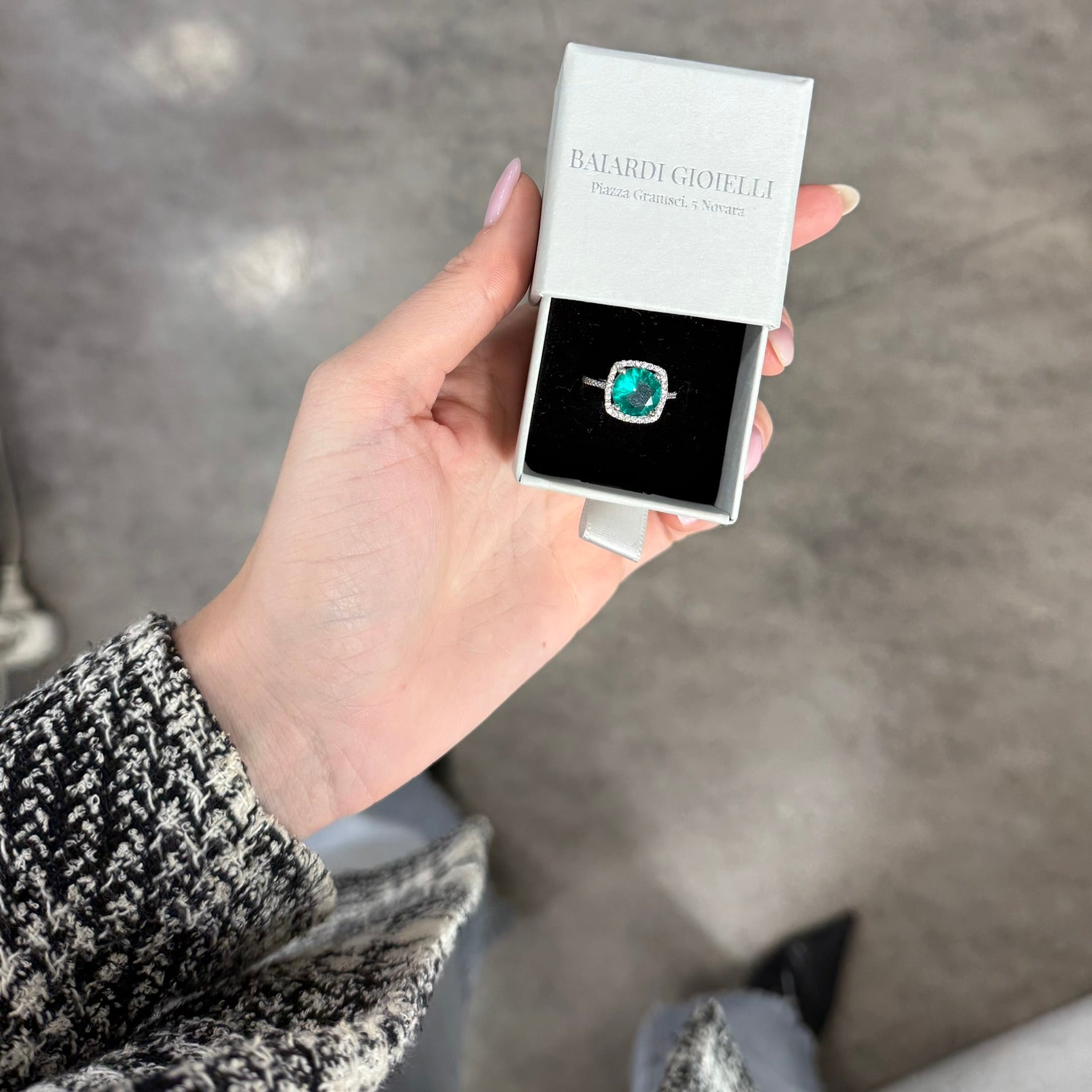 Anello in Argento 925 con Zirconi bianchi e Zircone centrale verde